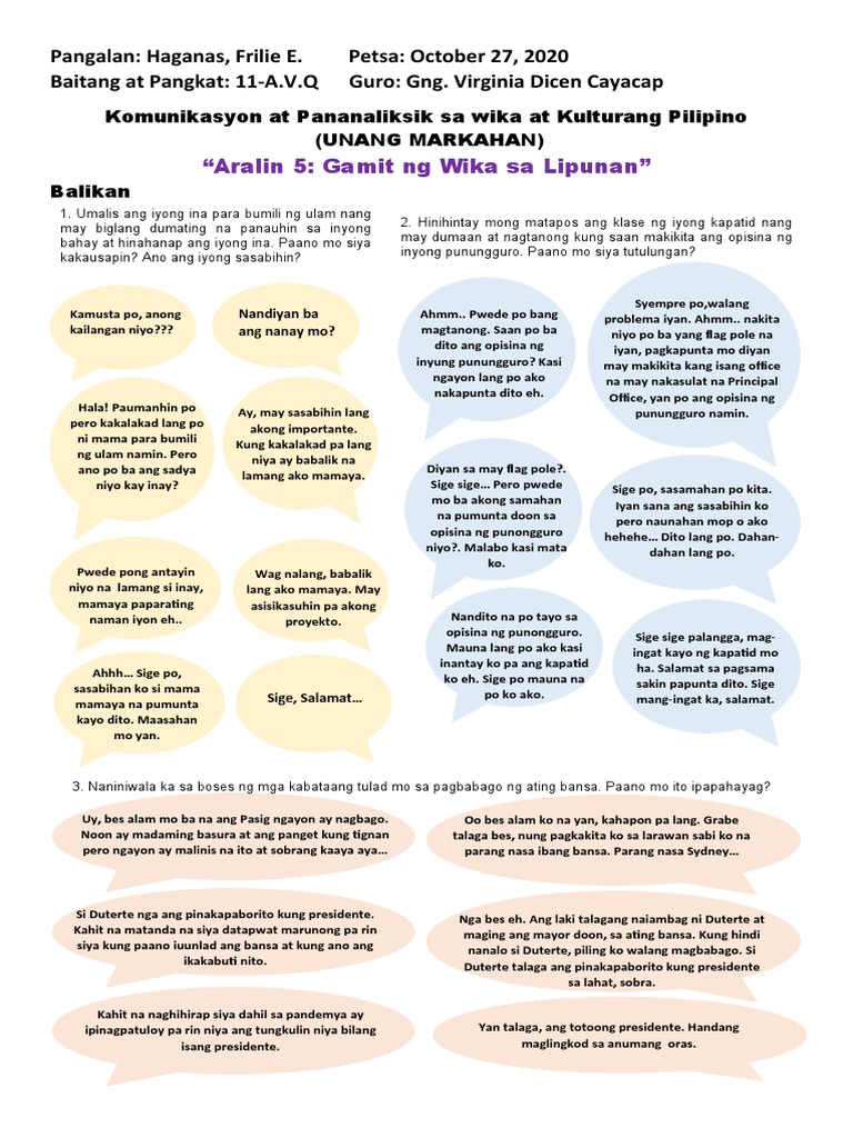 Ano ang tungkulin mo bilang mag-aaral sa ating lipunan. Tungkulin natin na panatilihin ang kapayapaan at katahimikan. WIKA Sa paksang ito ating tatalakayin kung ano nga ba ang ibat-ibang gamit ng wika sa ating lipunan at ang mga halimbawa nito.