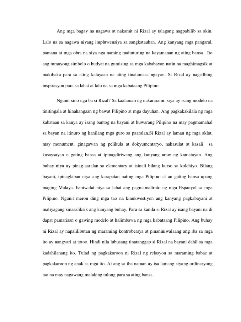 At ang bukas ninyoy aming tutuntunin Bukas kung tumawag ang bayan sa amin Ang. Ang mga bagay na nabatid ko tungkol kay Rizal ay ang kanyang pagkakakilanlan bilang pambansang bayani ng Pilipinas ay hindi nakapaloob sa kahit na anumang batas Si Dr. Maisabuhay Nang May Katarungan At Pagmamahal Ang Paggalang At Pagsunod Sa Magulang Nakatatanda At Sa Awtoridad.