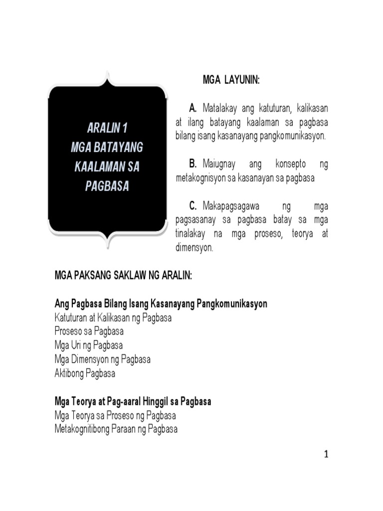 Ang Pagbasa Bilang Kasanayang Pangkomuni Pdf